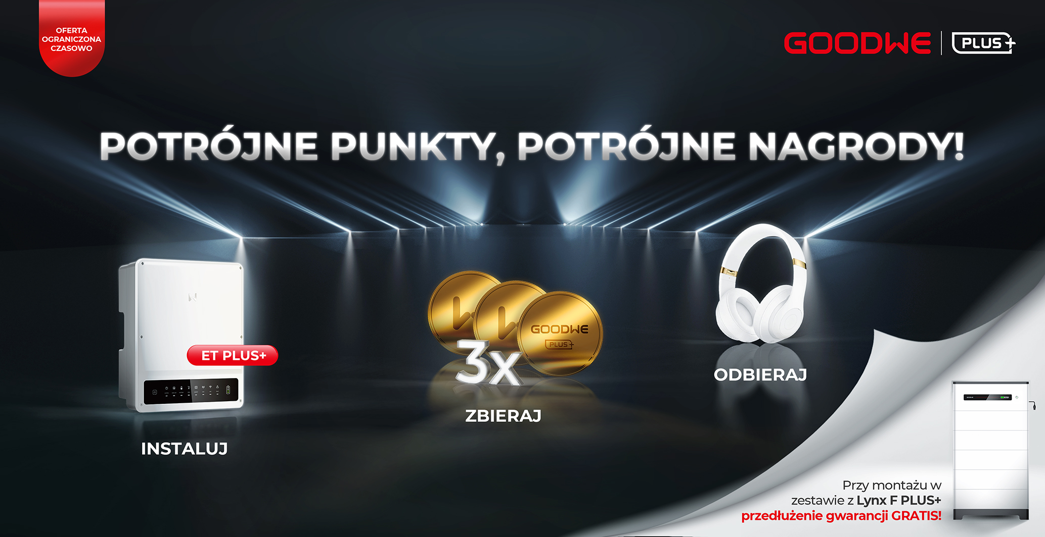 Kampania, realizowana w ramach programu lojalnościowego dla instalatorów GoodWe PLUS+, oferuje potrójną liczbę punktów bonusowych za każdy zainstalowany falownik serii ET PLUS+, ET PLUS+ (16A) oraz EH uruchomiony w Europie i zarejestrowany na platformie monitoringu GoodWe SEMS między 1 kwietnia a 31 lipca 2024 r.